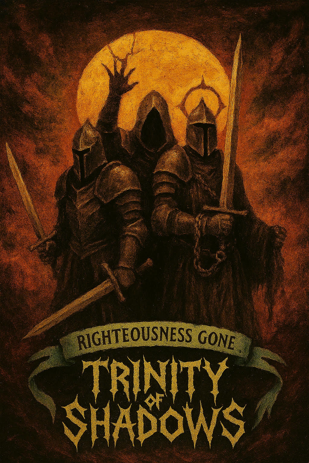The 2021 Righteousness Gone ep " Trinity of Shadows" is being remixed and remastered. The duo felt it sounded muddy and were unhappy and will re release it by the end of the month with a new cover and sounding much better. Keep checking the listen section in the upcoming weeks for that and as usual there will be limited variant covers for this release pressed in low numbers.